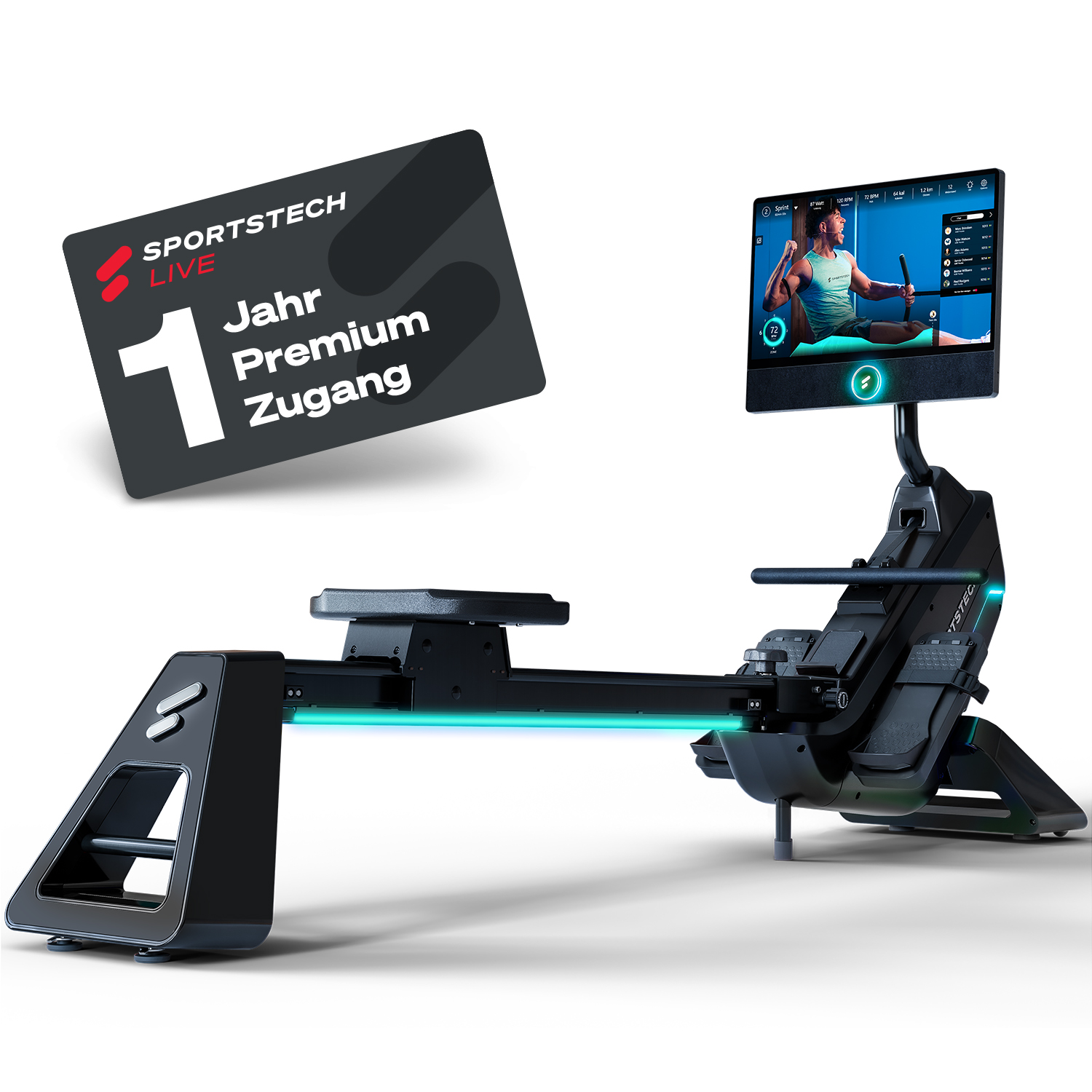 Le sRow Rower est un rameur haut de gamme conçu pour offrir une expérience d'entraînement fluide, immersive et silencieuse. Grâce à son système de freinage magnétique précis, le mouvement reste parfaitement régulier, soutenu par une masse d'inertie de 4 kg pour une rotation harmonieuse. Équipé d’un écran tactile 21,5 pouces, il intègre la Sportstech Live App, vous permettant d’accéder à des vidéos d’entraînement interactives, des programmes personnalisés et un suivi complet de vos performances. Le système LED intelligent adapte automatiquement les couleurs selon votre performance ou votre fréquence cardiaque, rendant chaque séance plus motivante. Conçu pour durer, ce rameur de qualité premium se plie facilement grâce à son mécanisme de pliage, ce qui facilite son rangement même dans les petits espaces.