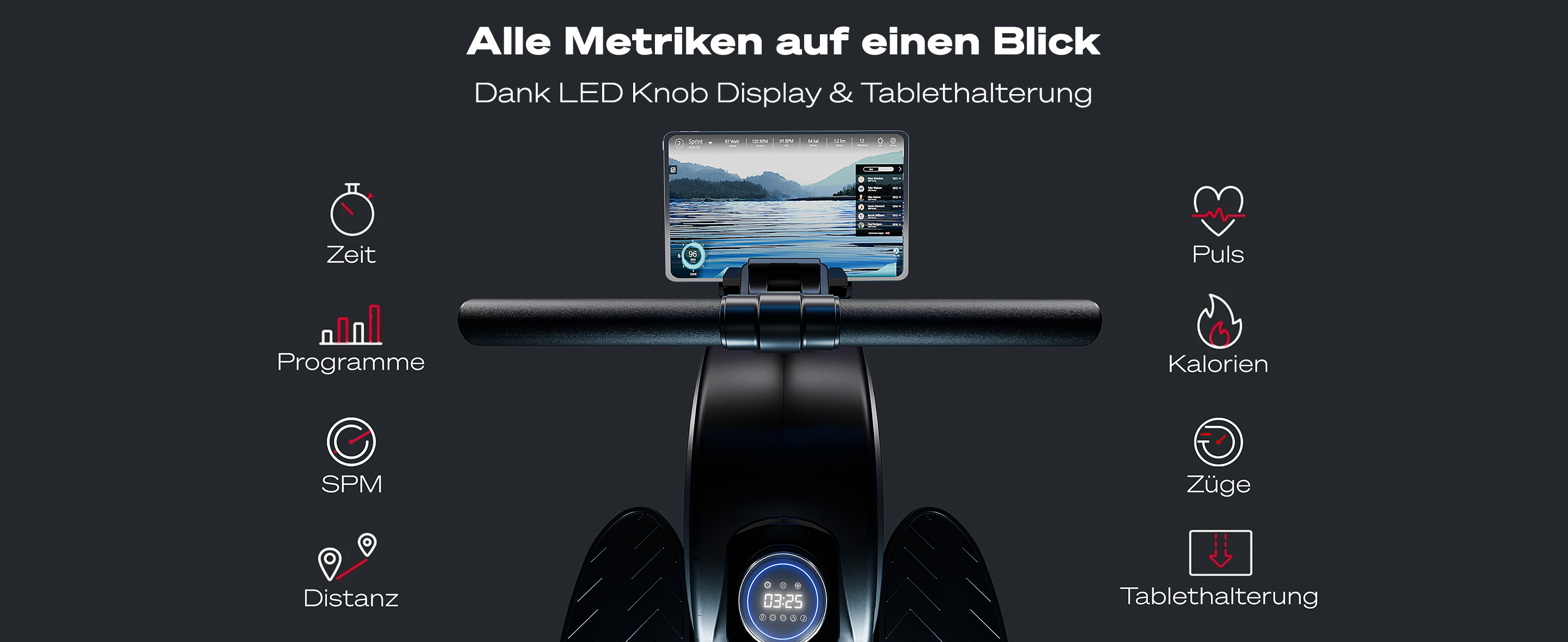 Découvrez le PROwer Rower, un rameur haut de gamme conçu pour un entraînement fluide, silencieux et performant. Grâce à son système de freinage électromagnétique offrant 32 niveaux de résistance, il s’adapte aussi bien aux débutants qu’aux athlètes confirmés. Son écran LED à bouton rotatif permet de consulter facilement toutes vos données : temps, distance, calories, SPM, programmes, pulsations et nombre de coups. Le rameur est équipé d’un siège confortable monté sur roulements à billes, glissant en douceur sur une double rampe en aluminium pour une stabilité maximale. Compatible avec les applications Bluetooth, il vous permet de suivre vos performances en temps réel ou d’ajouter de la motivation à vos séances. La tablette support intégrée offre un confort optimal pour regarder des vidéos d’entraînement ou suivre votre application préférée. Un appareil idéal pour un entraînement complet, immersif et ultra-silencieux.